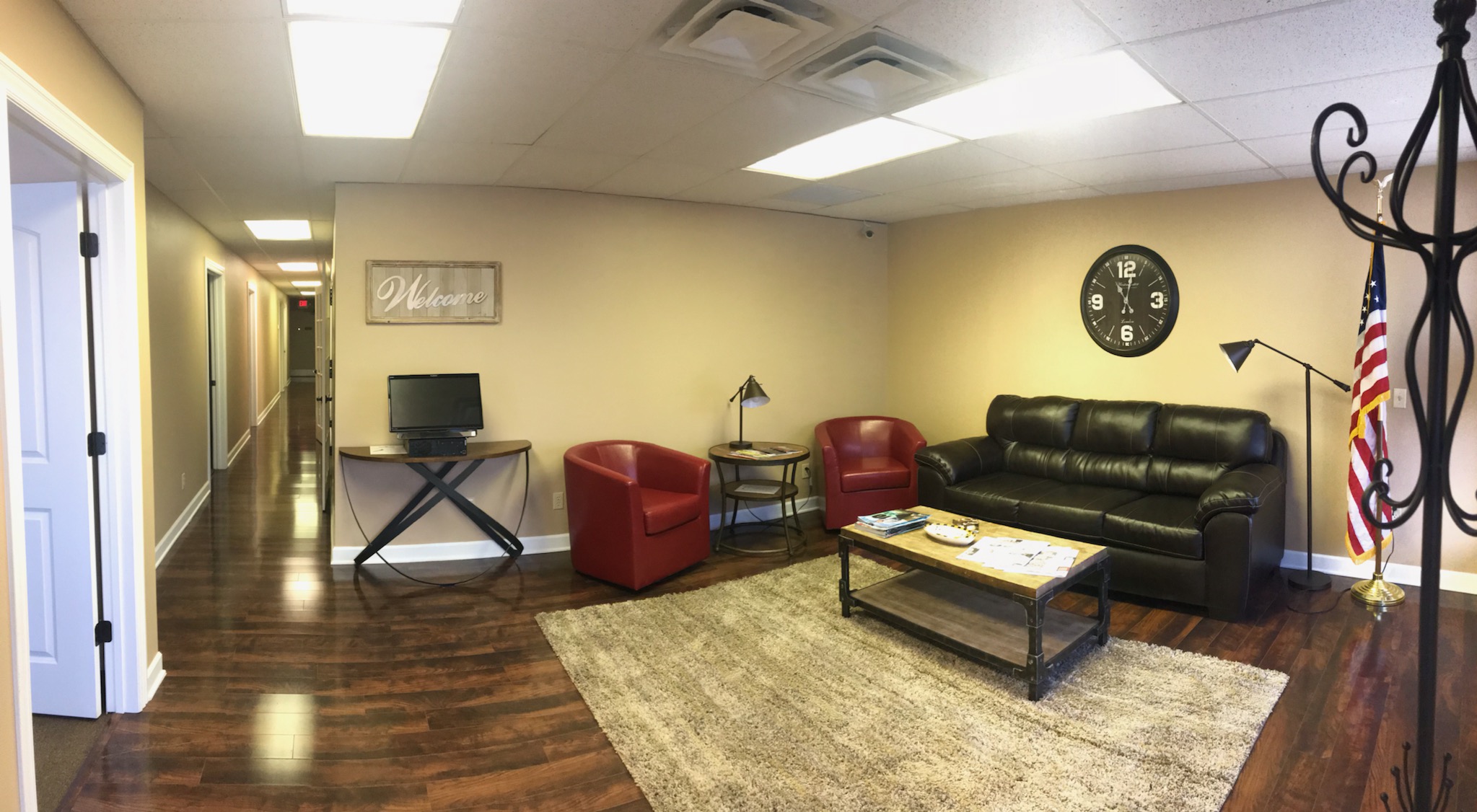 Reception area, kitchen with coffee service, and restrooms included at every location.